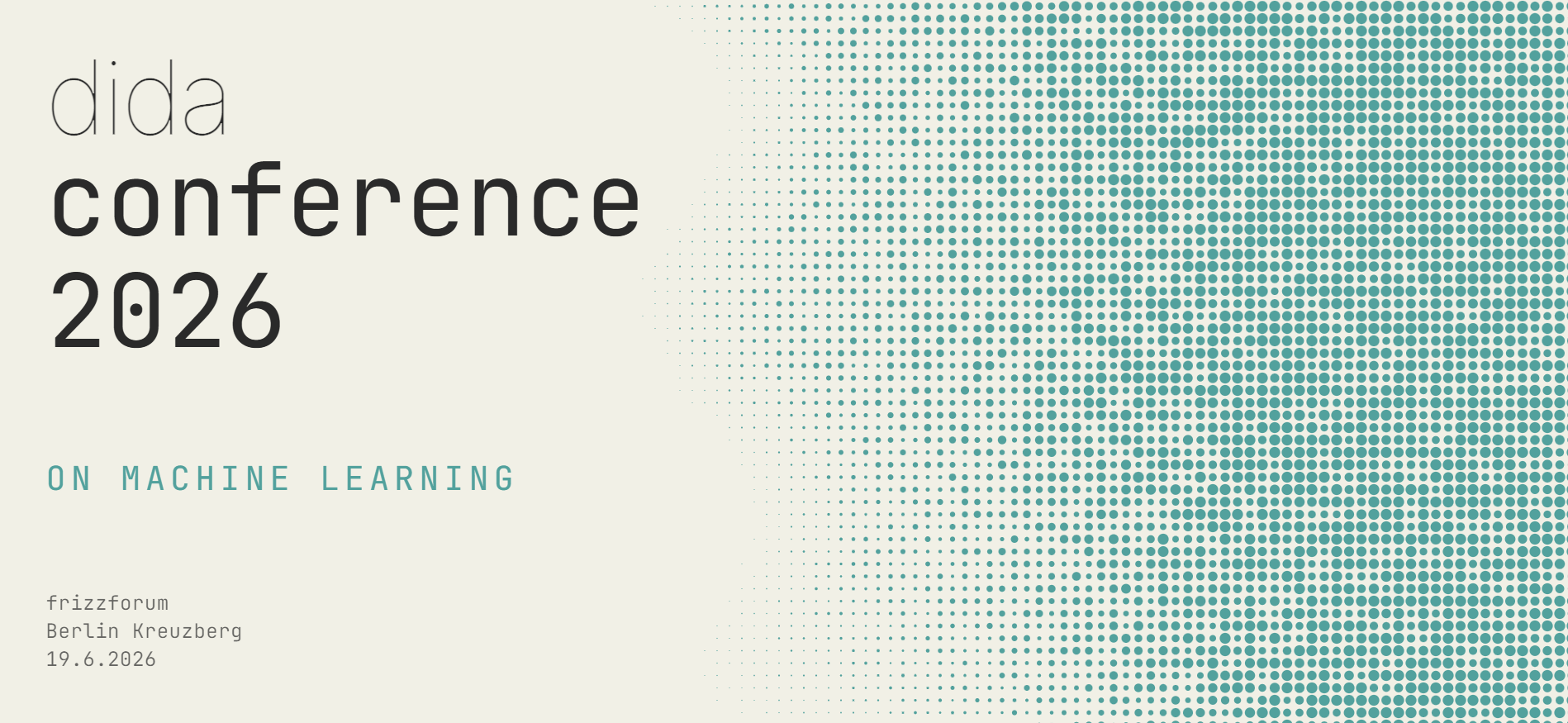 Einmal im Jahr veranstalten wir in Berlin die dida conference als einen Ort für angewandtes Machine Learning - mit spannenden Vorträgen, Workshops und Raum für Networking. Dabei versuchen wir, eine Brücke zu schlagen zwischen aktueller ML-Forschung und Produktionssoftware in der Anwendung - mit Themen wie Computer Vision, NLP, MLOps und vielen mehr. Neben theoretischen Vorträgen gibt es Einblicke in tatsächliche Projekte und neben technischen Themen beleuchten wir ebenso organisatorische und ethische Aspekte.