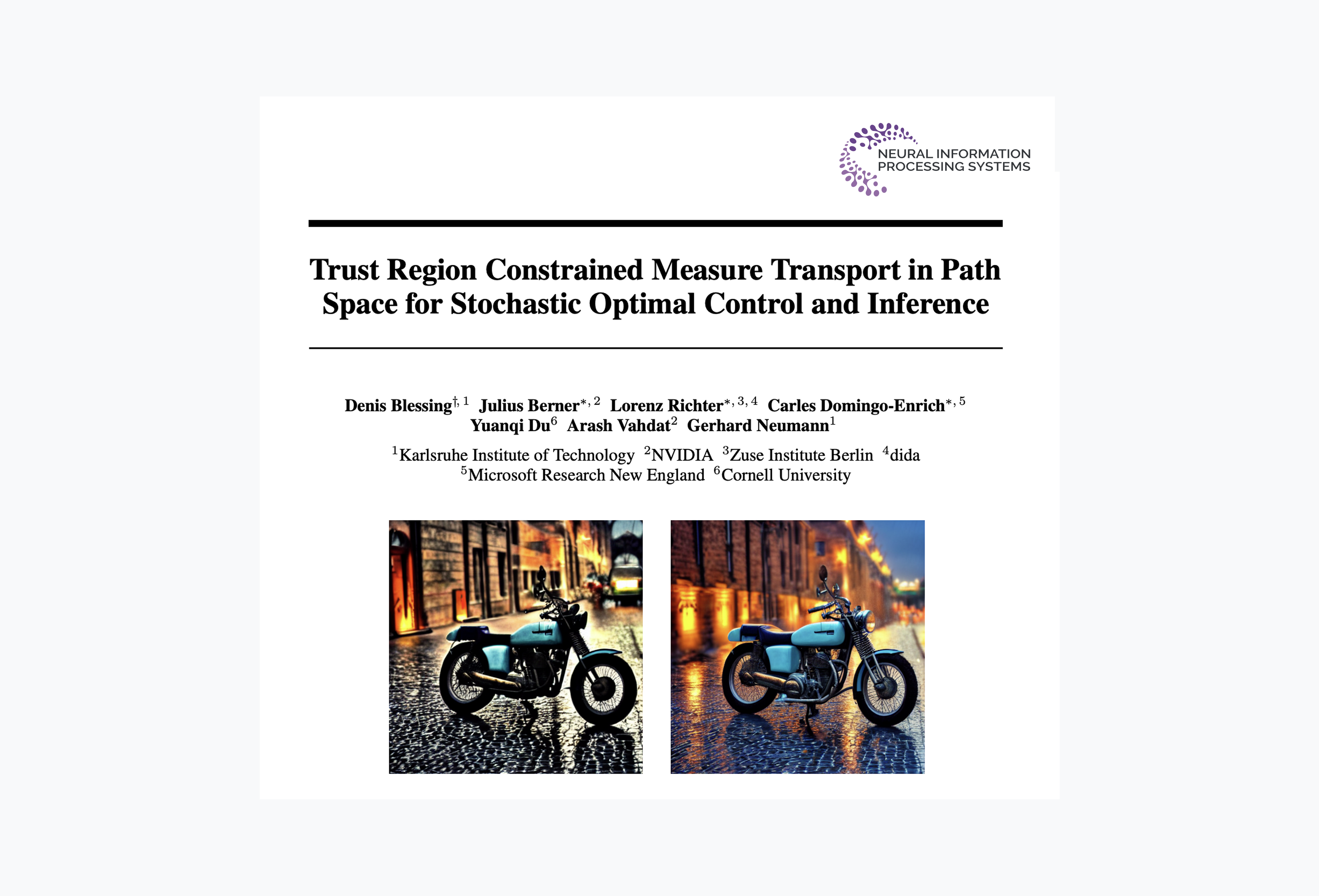 Today we’re very happy to share that our paper on stochastic optimal control, which we developed in collaboration with colleagues from Karlsruher Institut für Technologie (KIT), NVIDIA, Microsoft Research and Cornell University has been accepted to NeurIPS 2025.