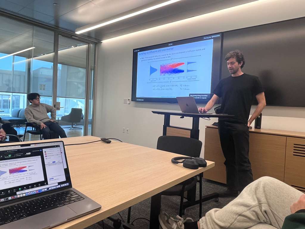The presentation and discussion centered around how we can use controlled diffusion processes to sample from complex target distributions.